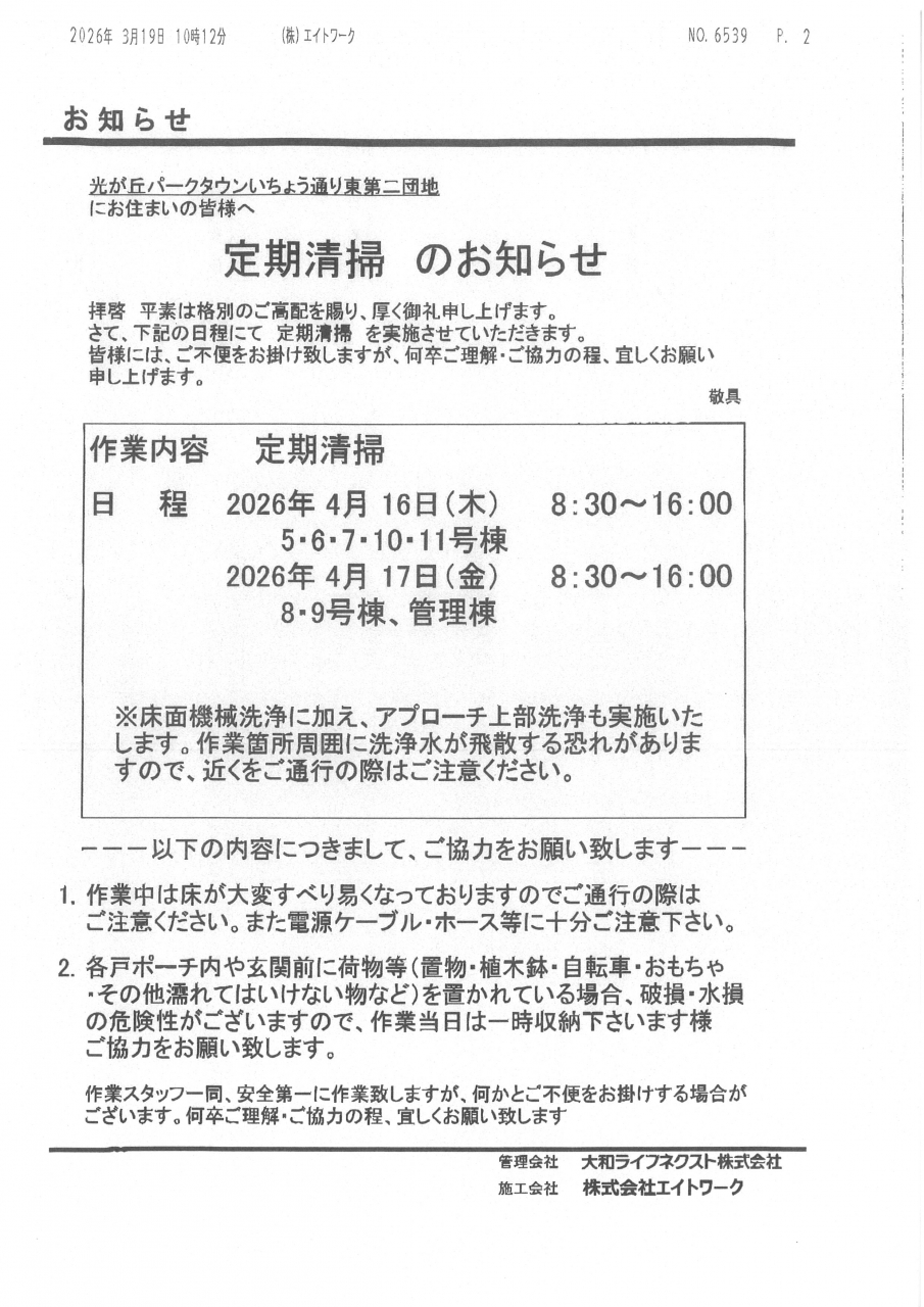 2026年2月8日 給湯設備定期点検のお知らせ 在宅の必要はございません。