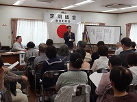 526日(日)定期総会が行われました。52名が開場せましと集まりました。(常任21名・一般9名・執行部13名・特別会員1名・感謝状授与2名・来賓6名)6の提出議案は全て満場一致で可決されました。引き続き行われた懇親会も盛況で各テーブルでは笑い声が絶えない状態でした。