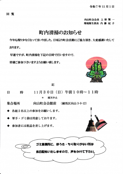 向山町会は、練馬区向山1丁目~4丁目29番地までからなる町会です。