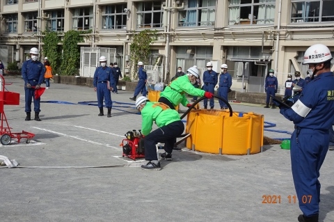 地震や火災に備え、日頃からの軽可搬ポンプの操作技術を向上させる訓練は大切です。