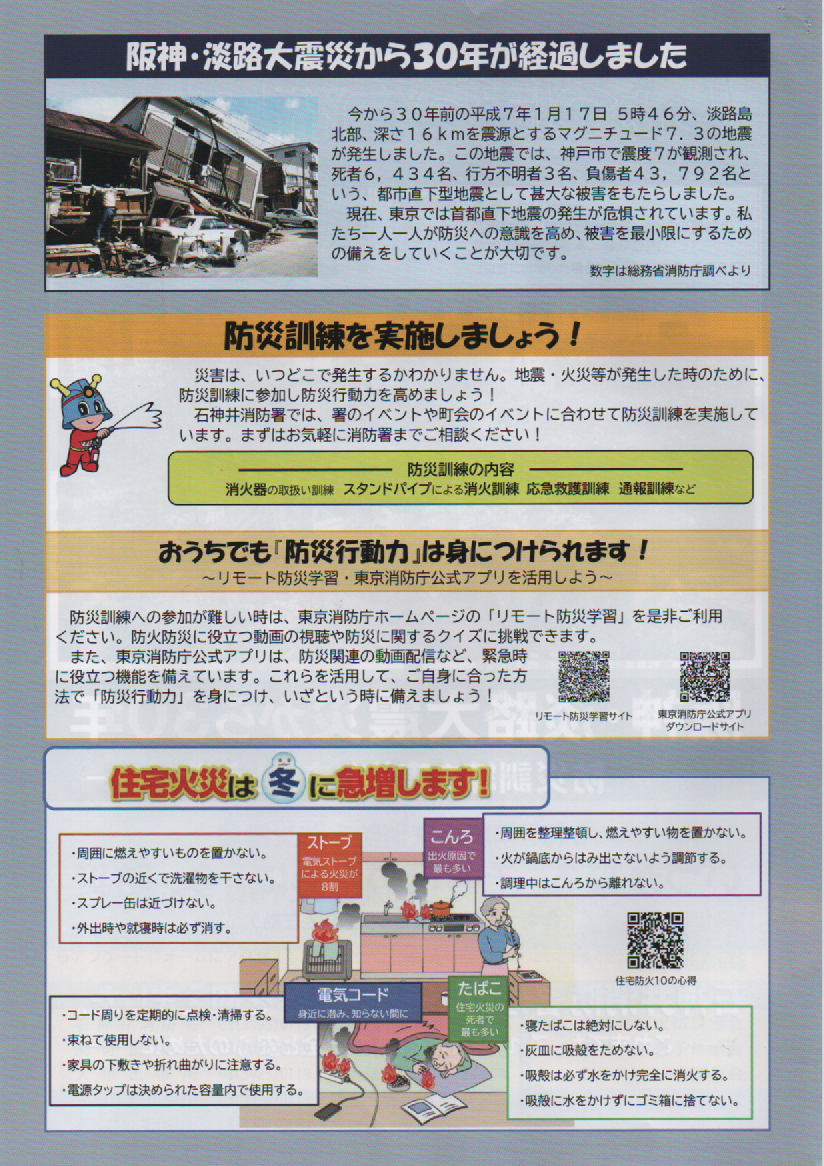 石神井台沼辺町会 回覧板 消防のお知らせ 秋の火災予防運動