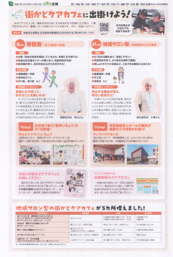 ねりま区報 12/21 街かどケアカフェに出掛けよう!