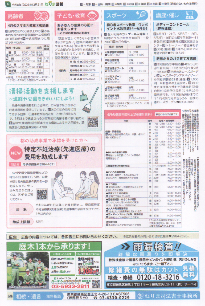 ねりま区報 3/21 小中一貫教育校みらい青空学園と複合施設を開設!