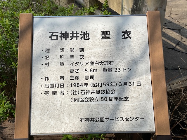 都立石神井公園 石神井池(ボート池) モニュメント 聖衣 「制作者 三澤憲司」