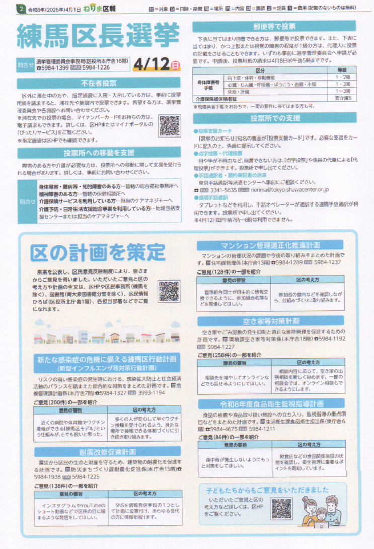 ねりま区報 4/1 練馬の未来を決める一票 練馬区長選挙 4/12 日曜日