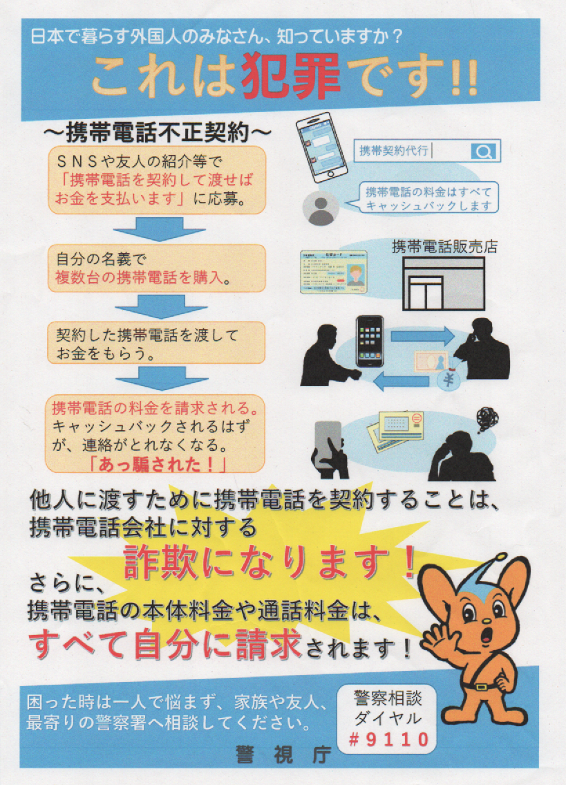 日本で暮らす外国人のみなさん、知っていますか?これは犯罪です!!