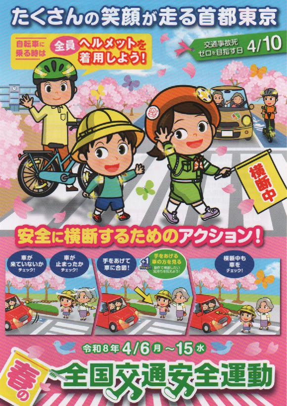 春の全国交通安全運動が始まります。令和8年4/6(月)~4/15(水)
