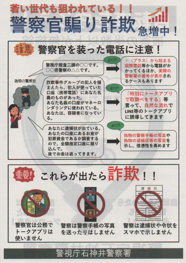 若い世代も狙われている!! 警察官騙り詐欺急増中!
