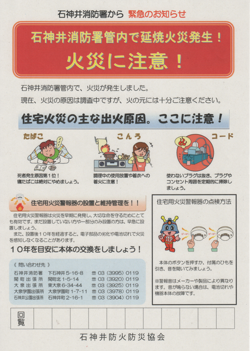 石神井消防署から緊急のお知らせ