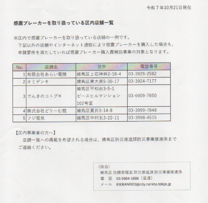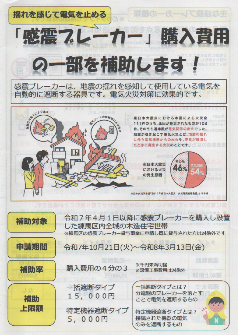 揺れを感じて電気を止める「感震ブレーカー」購入費用の一部を補助します!