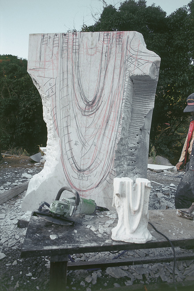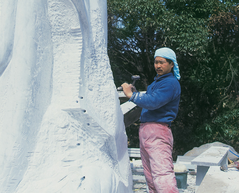 島をつくり、イタリア産大理石で「聖衣」をつくった。