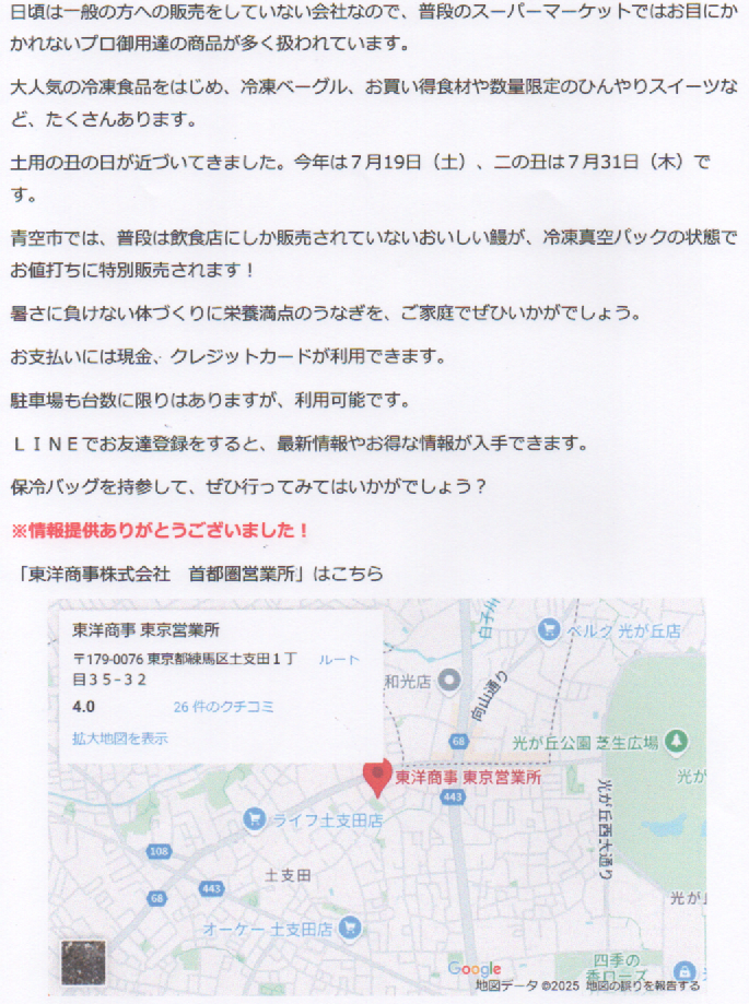 地域NEWS 号外NET 練馬区 「東洋商事」で「業務用食材の青空市場」が開催されます