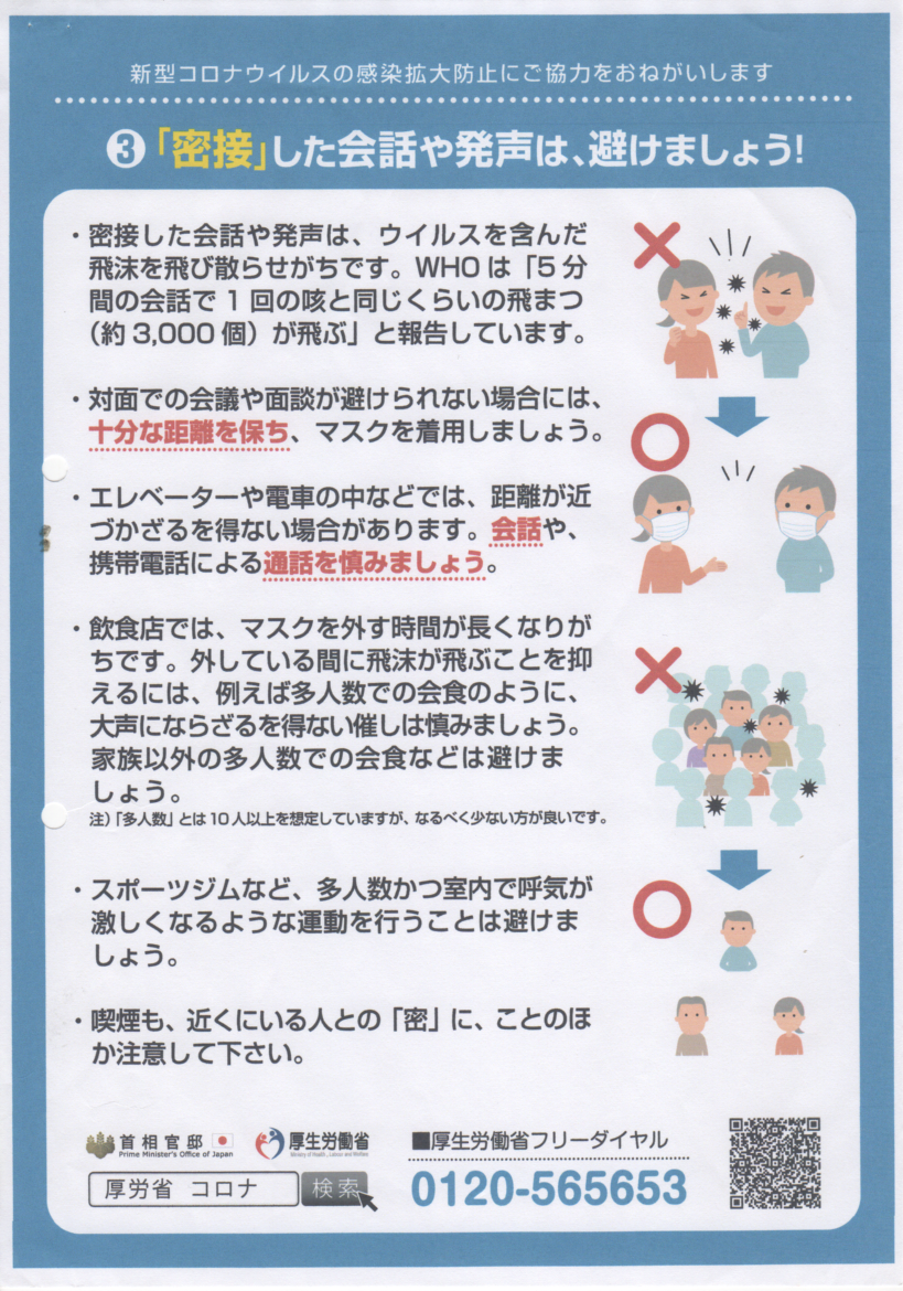 新型コロナウイルスの感染拡大防止にご協力をお願いします