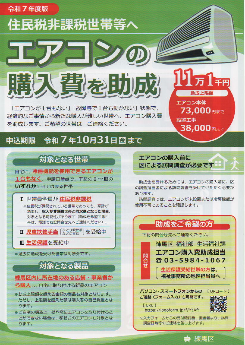 住民税非課税世帯等へ エアコンの購入費を助成