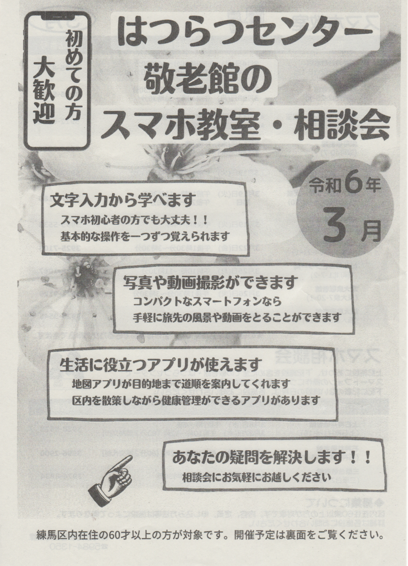 初めての方大歓迎 はつらつセンター 敬老館のスマホ教室・相談会
