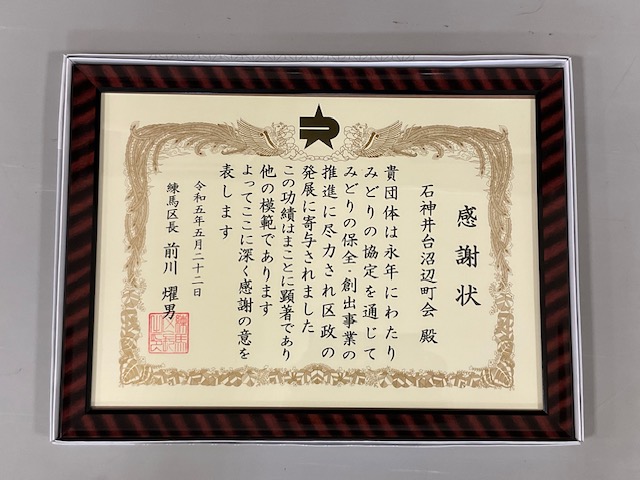 石神井台沼辺町会が石神井消防署・練馬区から表彰されました。