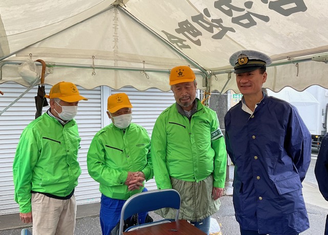 春の全国交通安全運動期間中石神井警察署五島署長が沼辺町会のテントに巡視に来られました。
