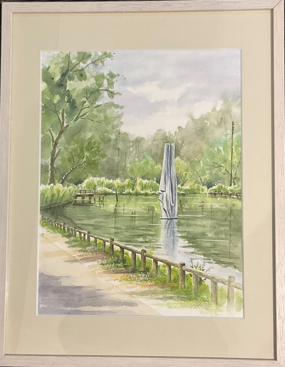 この沼辺町会ホームページに掲載した、「石神井池 聖衣」案内プレートの名前が水彩画の題名として使用されました。