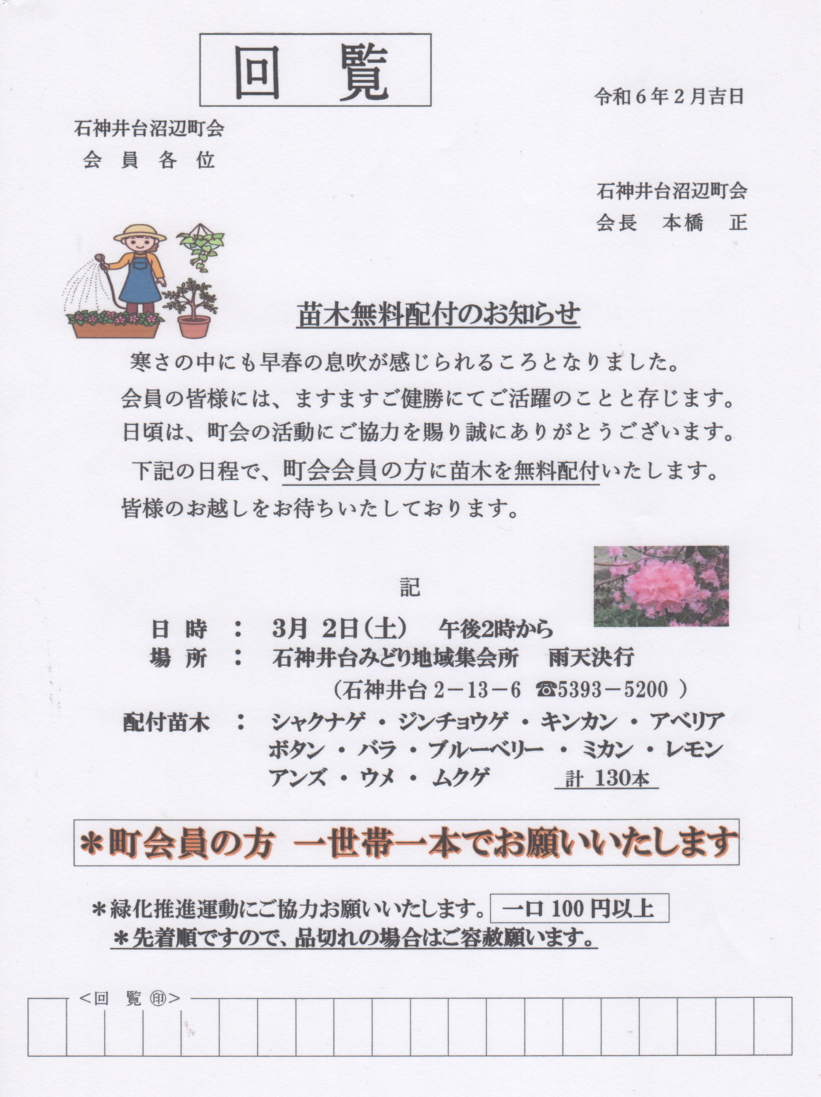 石神井台沼辺町会 回覧板