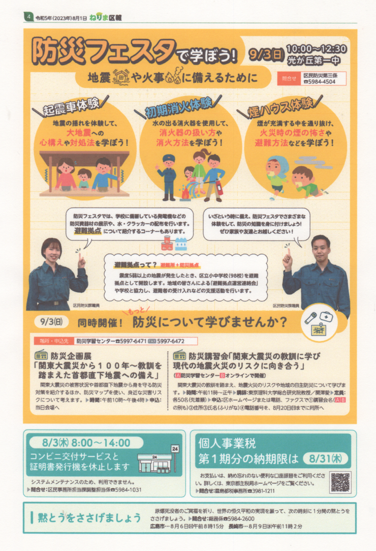 ねりま区報 8/1 災害に備えよう! 防災フェスタ