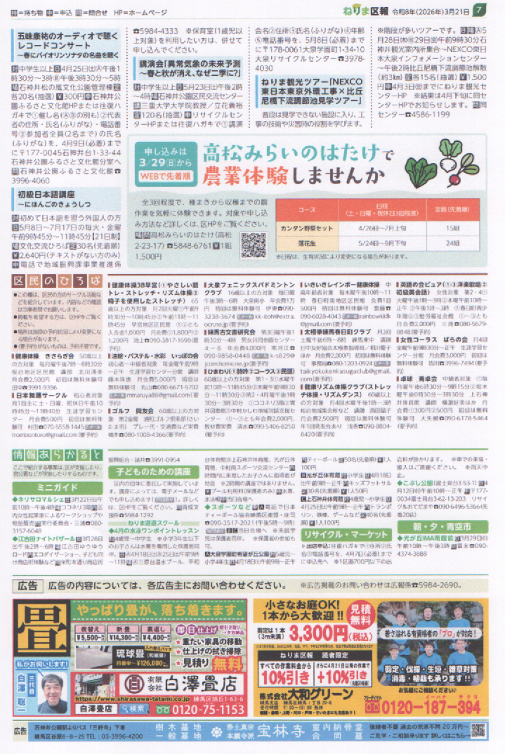 ねりま区報 3/21 小中一貫教育校みらい青空学園と複合施設を開設!
