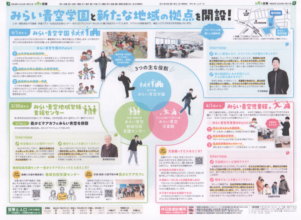 ねりま区報 3/21 小中一貫教育校みらい青空学園と複合施設を開設!