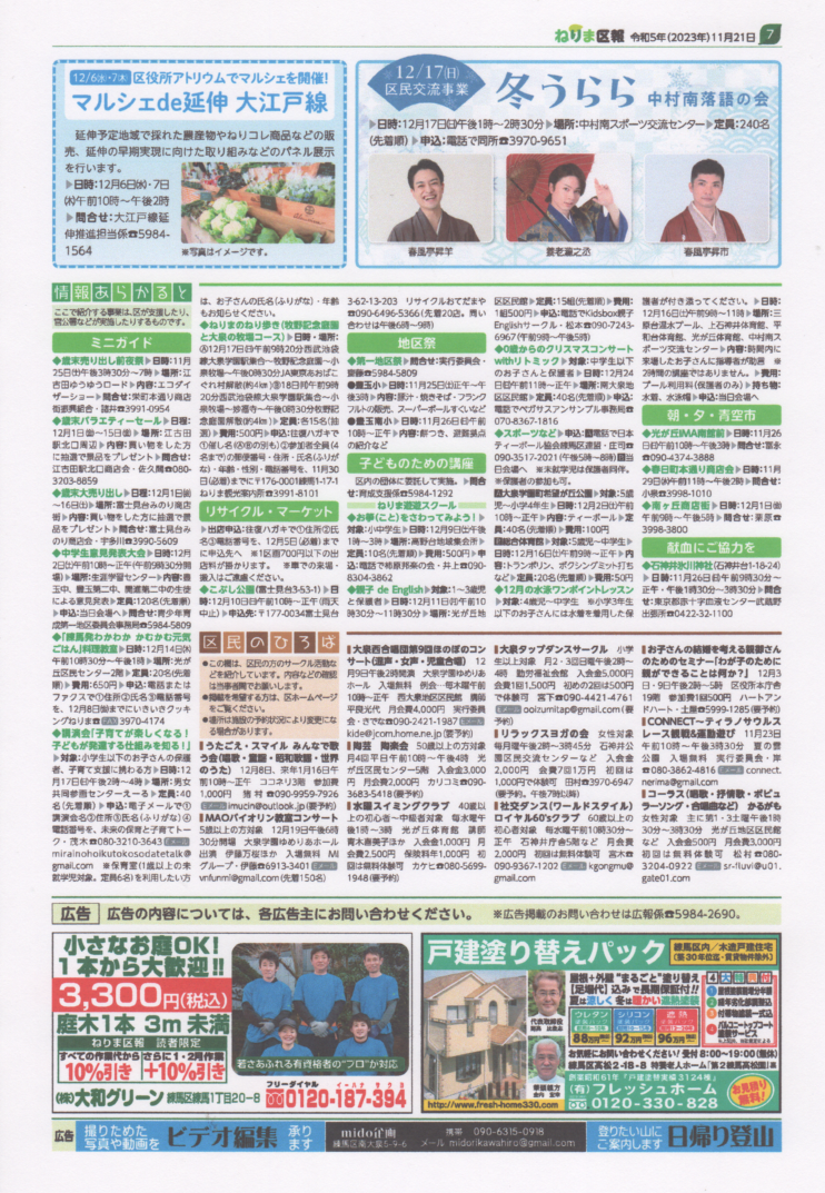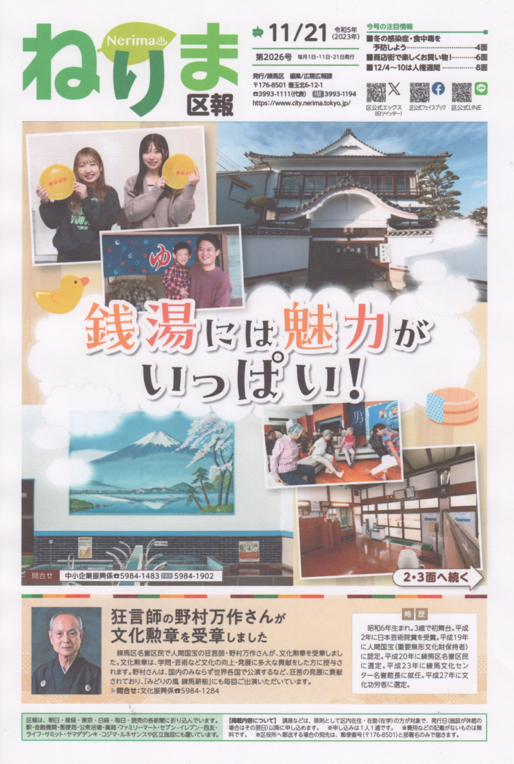 ねりま区報 11/21 銭湯には魅力がいっぱい!