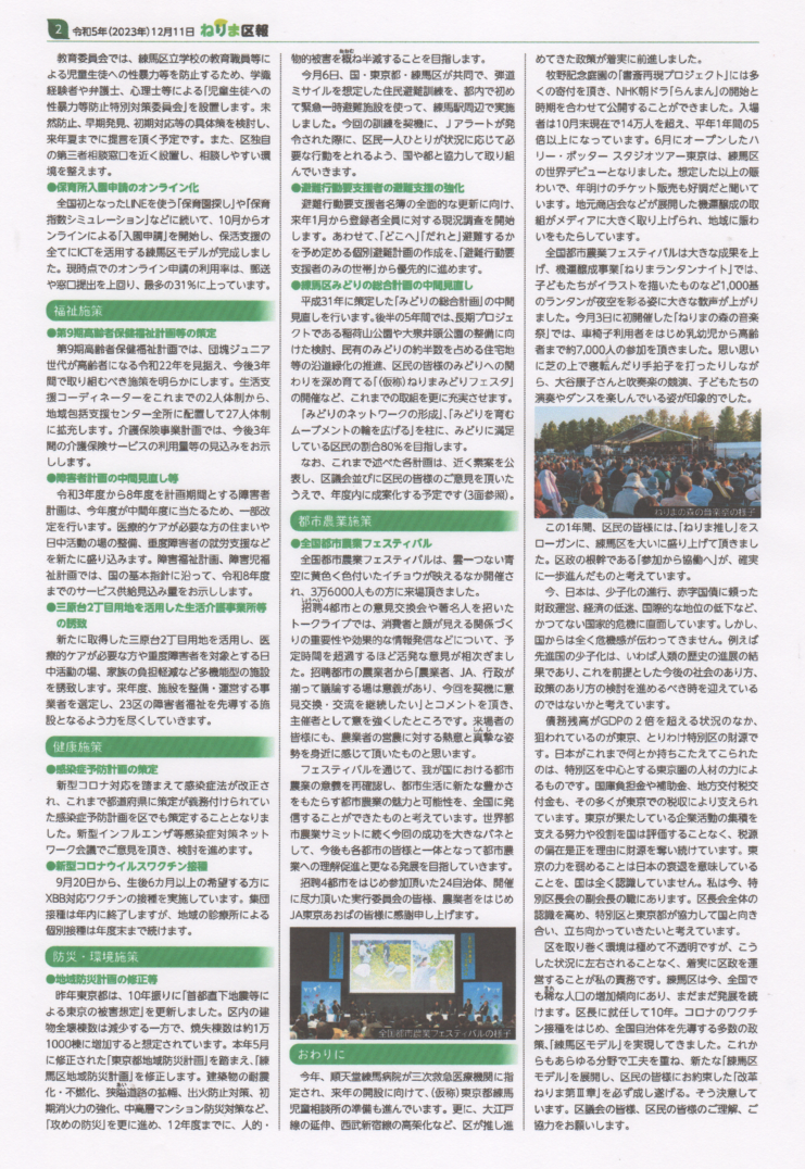 ねりま区報 12/11 より豊かな区民生活を目指して