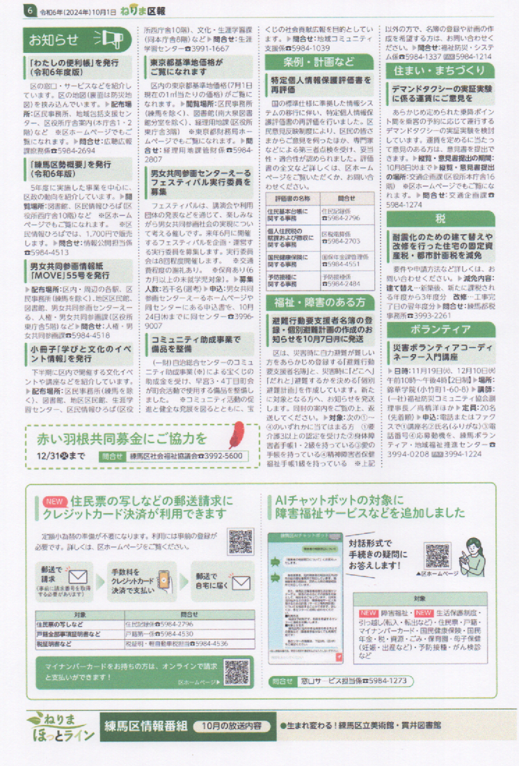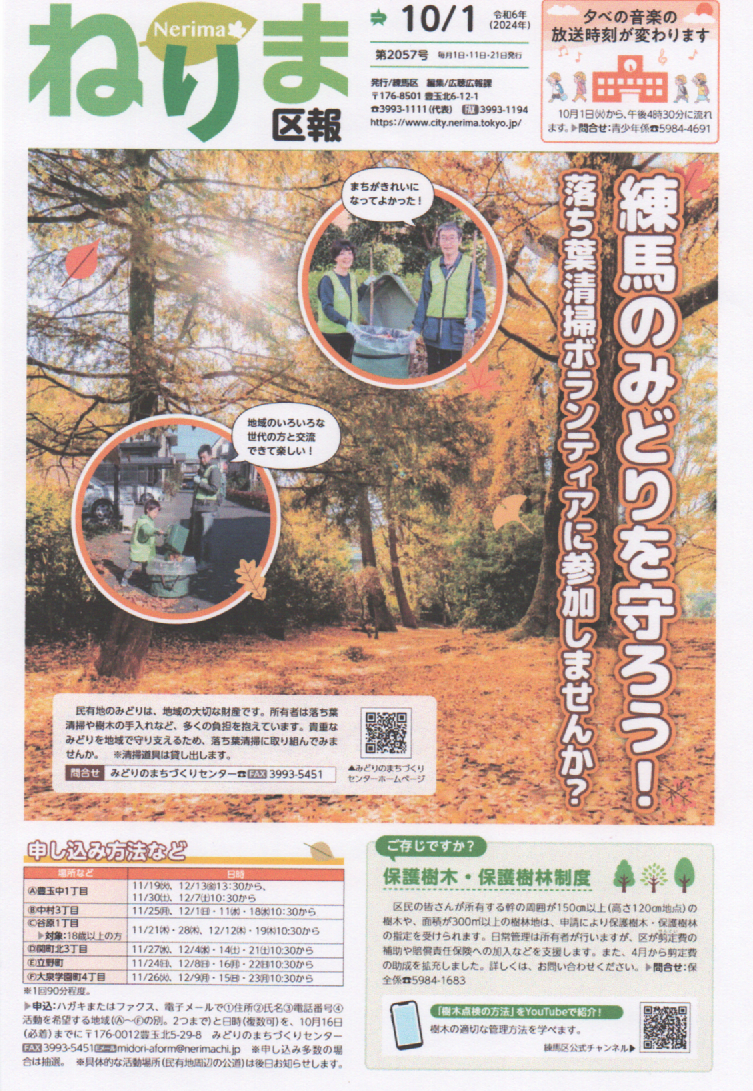 ねりま区報 10/1 練馬のみどりを守ろう! 落ち葉清掃ボランテイアに参加しませんか?