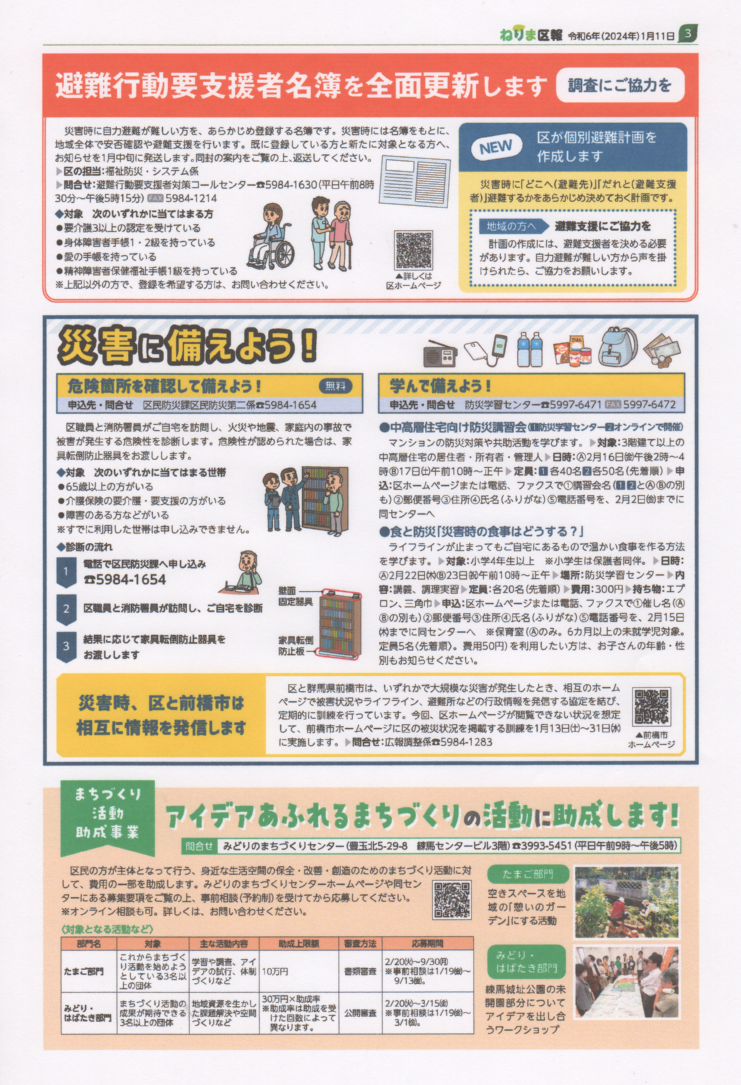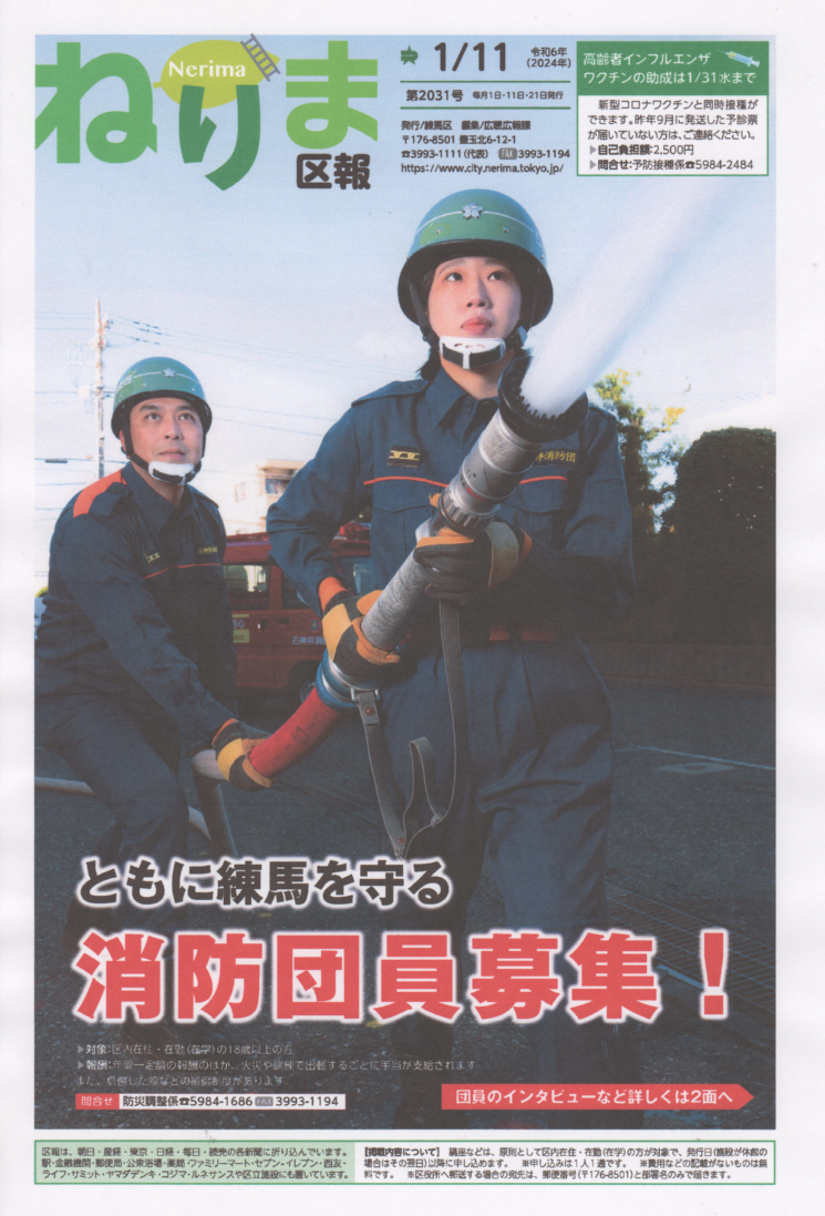 ねりま区報 1/11 ともに練馬を守る 消防団員募集!