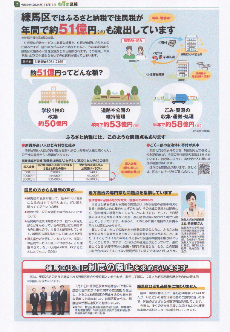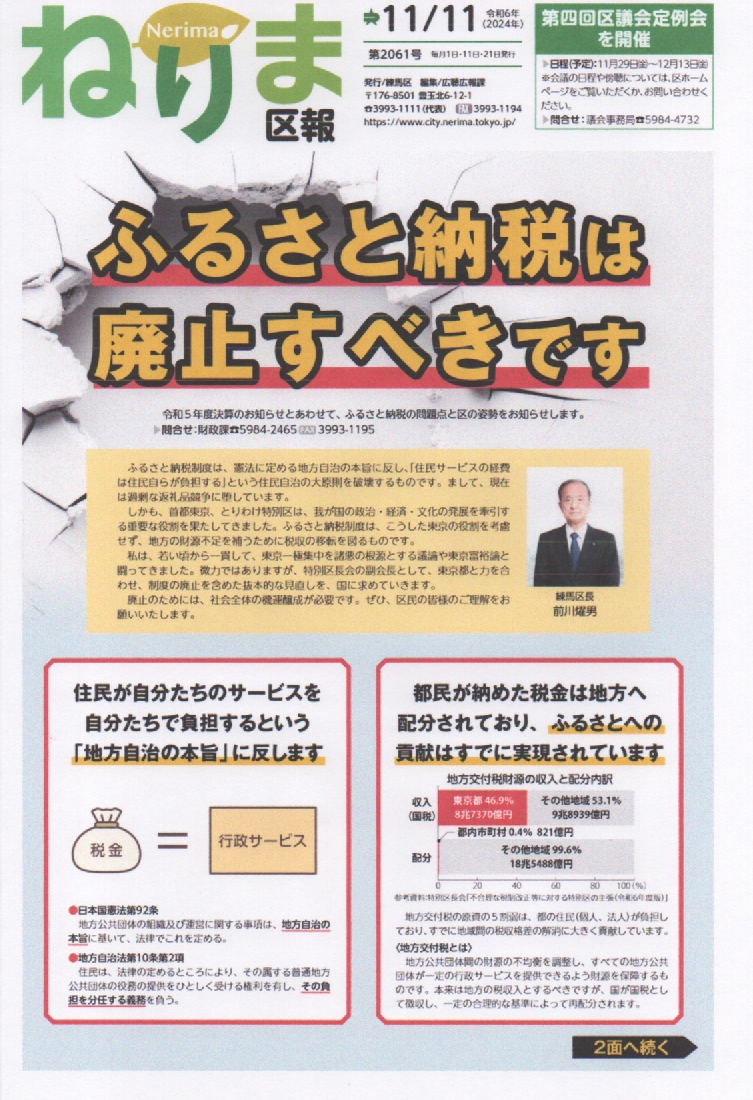 ねりま区報 11/11 ふるさと納税は廃止すべきです