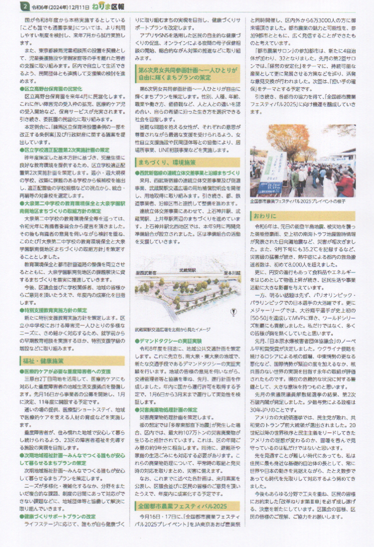 ねりま区報 12/11 「改革ねりま第Ⅲ章」を必ず成し遂げます