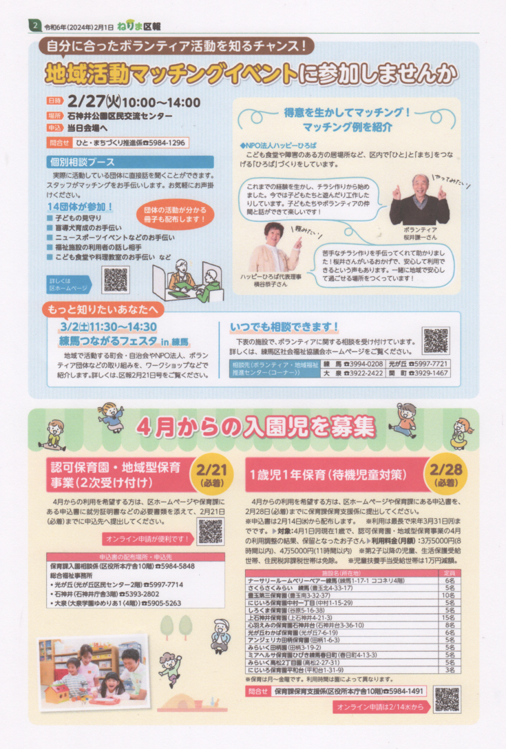 ねりま区報 2/1 「頼みたい」と「やってみたい」がつながる! 地域活動マッチングイベント