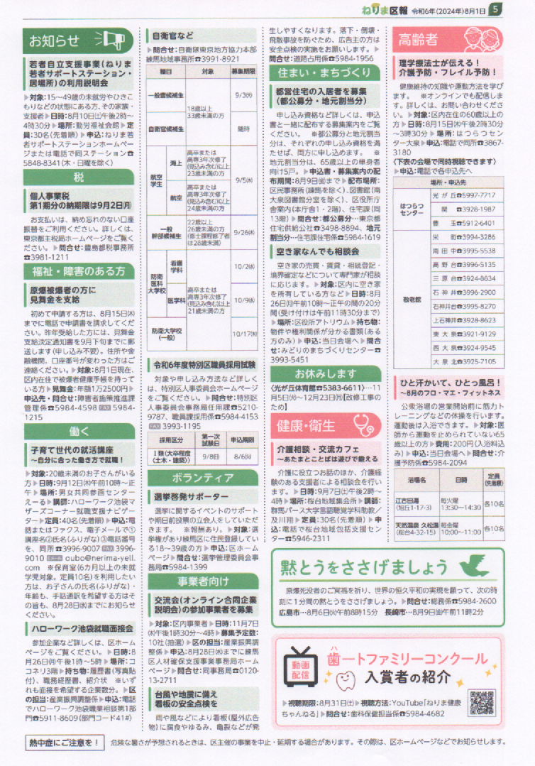 ねりま区報 8/1 始める、続ける ねりまスポーツ