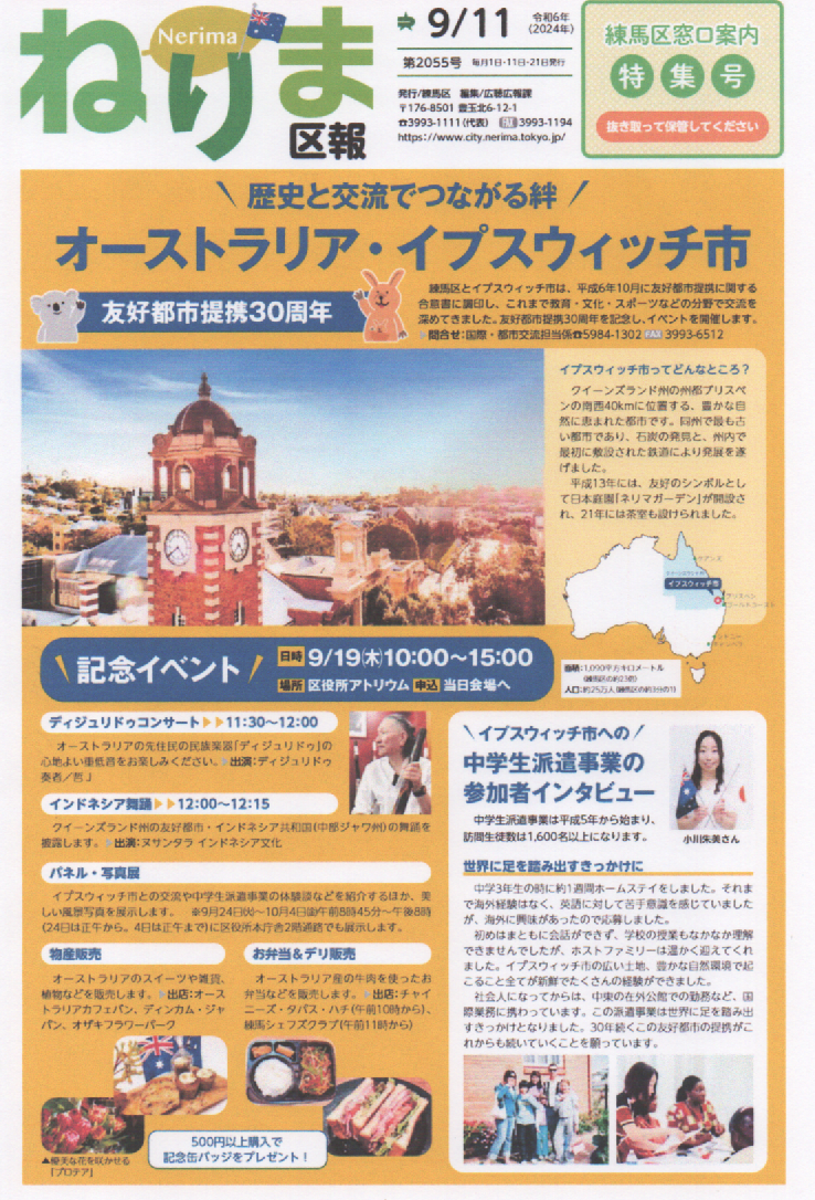 ねりま区報 9/11 歴史と交流でつながる絆 オーストラリア・イプスウィッチ市