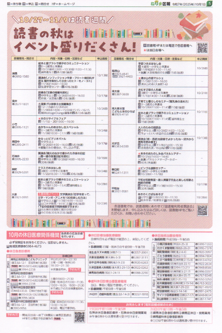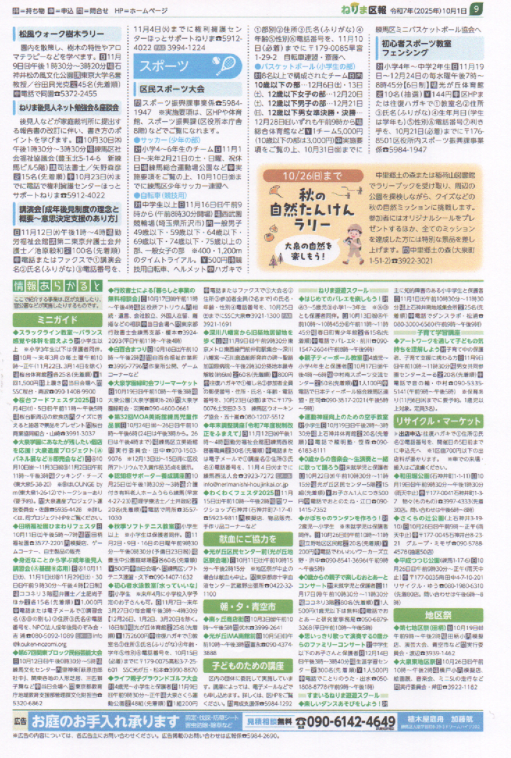 ねりま区報 10/1 落ち葉清掃 ボランティアに参加しませんか?