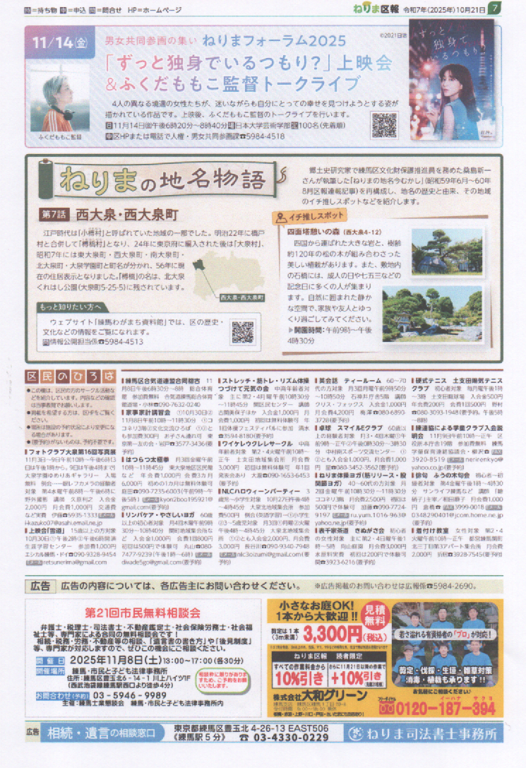 ねりま区報 10/21 ねりまの森の音楽祭2025 入場無料