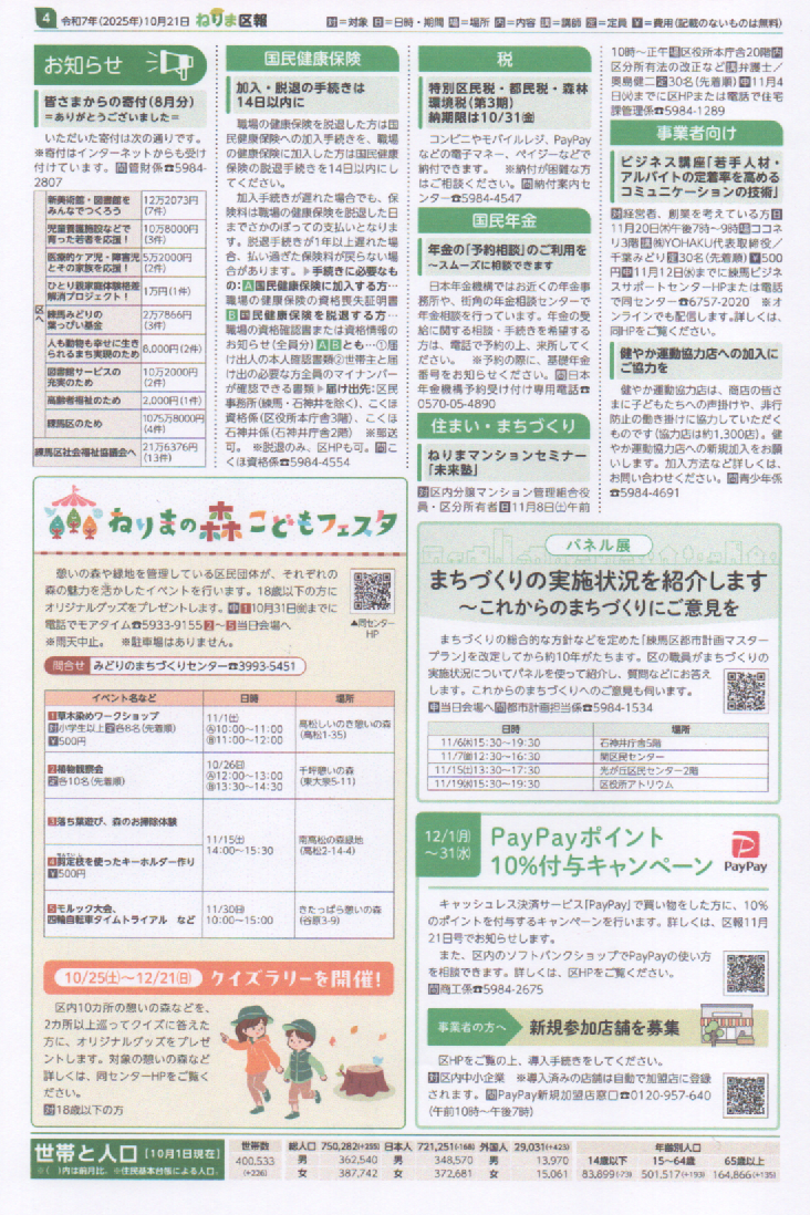 ねりま区報 10/21 ねりまの森の音楽祭2025 入場無料