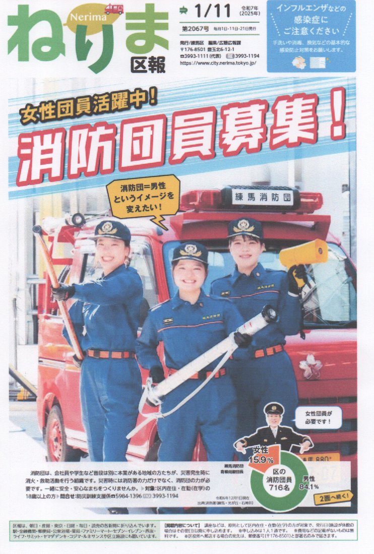 ねりま区報 1/11 女性団員活躍中! 消防団員募集!