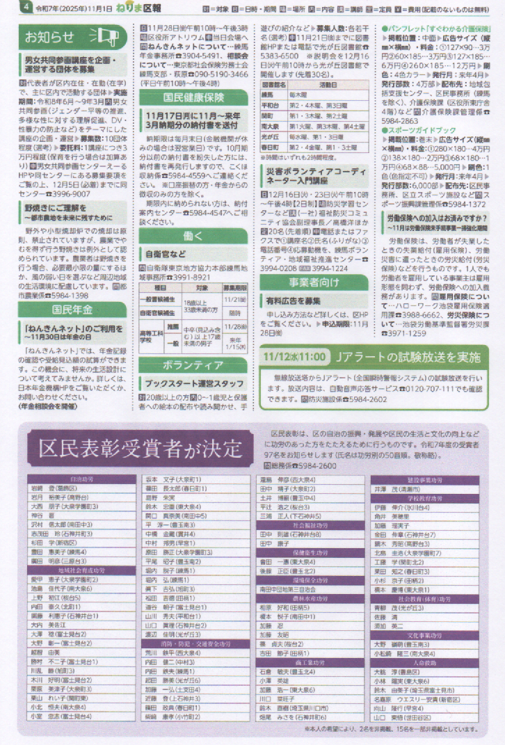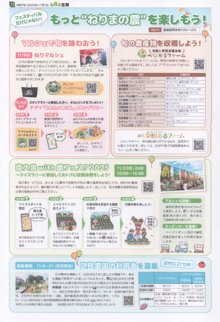 ねりま区報 11/1 全国都市農業フェスティバル2025