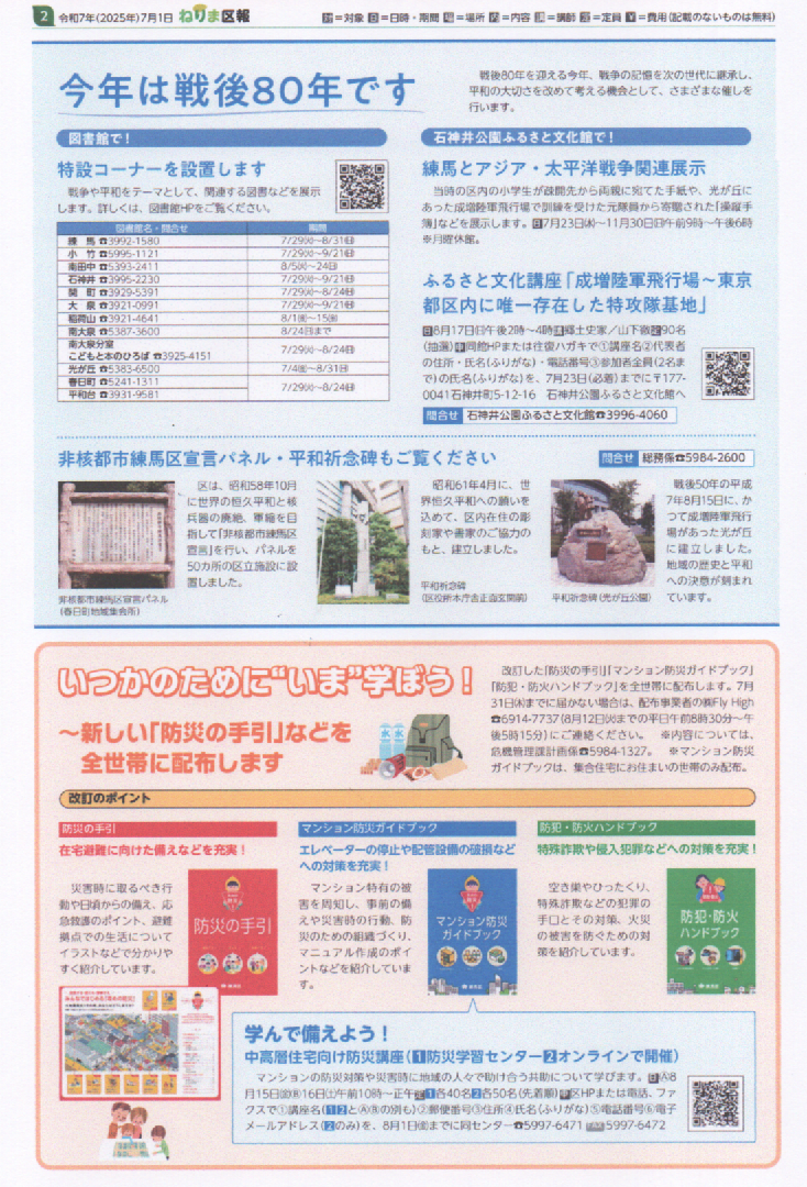 ねりま区報 7/1 今年は戦後80年です 第33回平和記念コンサート 入場無料