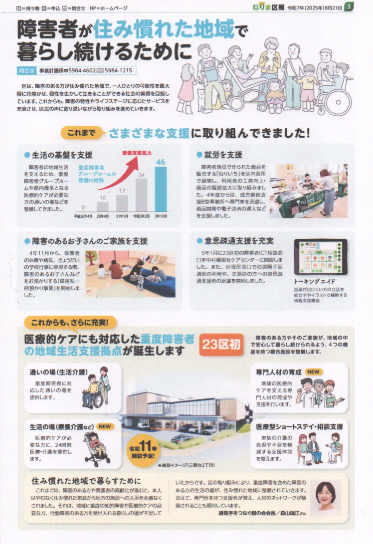 ねりま区報 8/21 9月は障害者雇用支援月間 働きたいを支えます