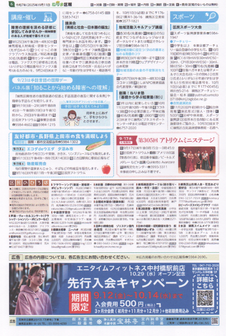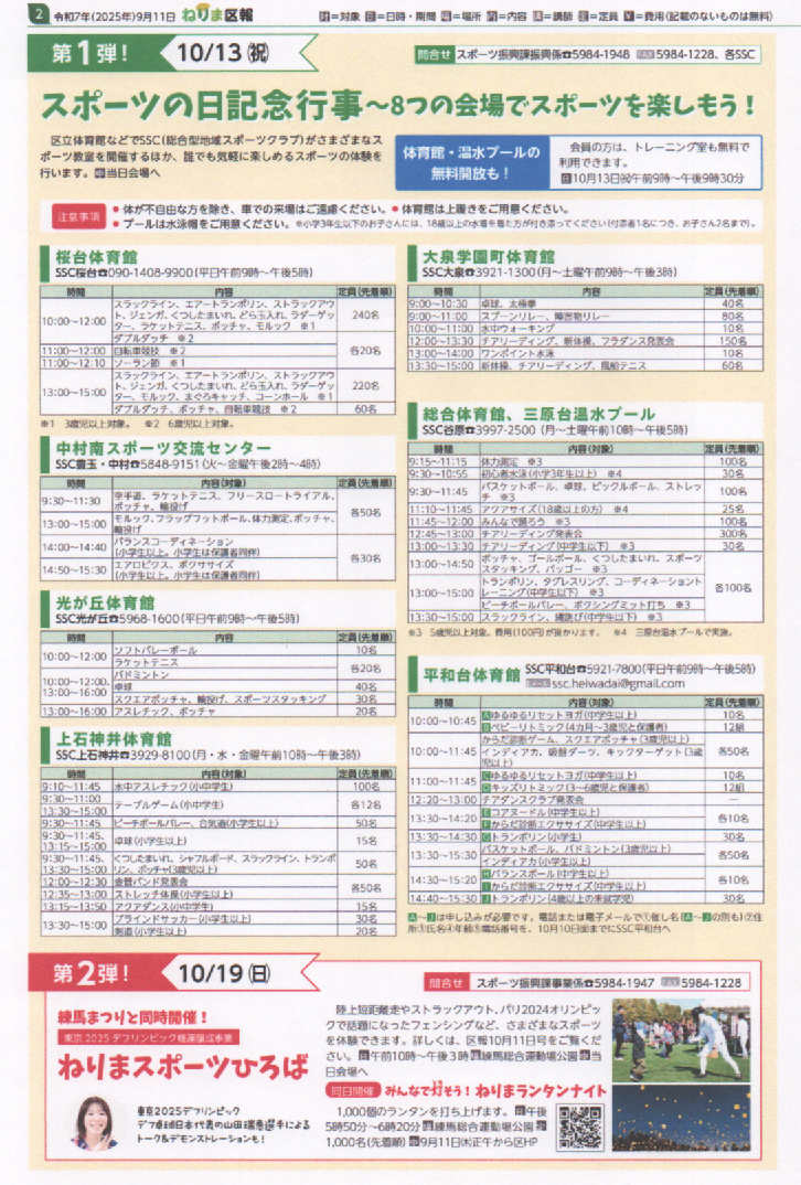 ねりま区報 9/11 スポーツの秋だ! ねりま秋のスポーツフェス