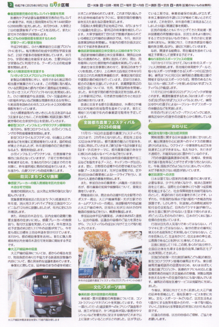 ねりま区報 9/21 「改革ねりま第Ⅲ章」の実現に向けて