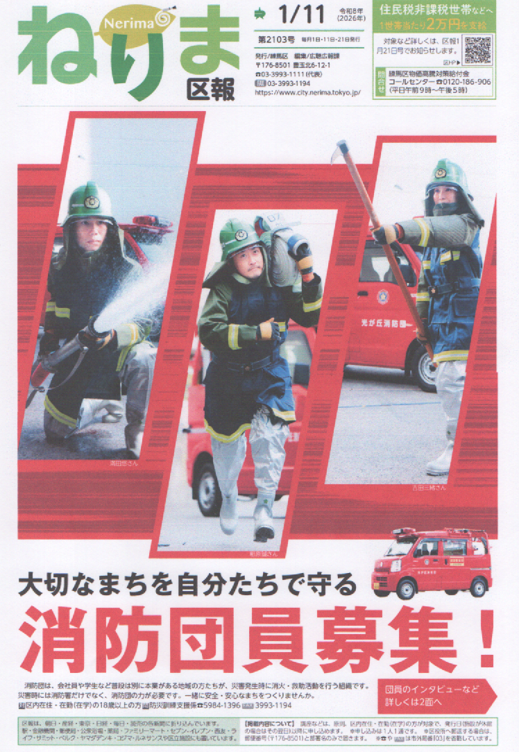 ねりま区報 1/11 大切なまちを自分たちで守る 消防団員募集!