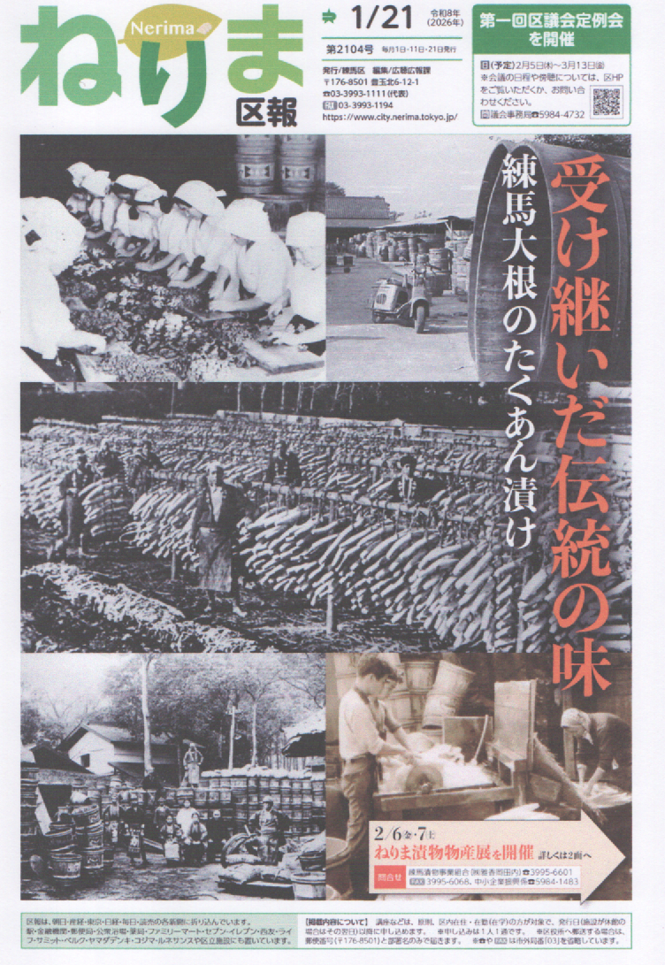 ねりま区報 1/21 受け継いだ伝統の味 練馬大根のたくあん漬け