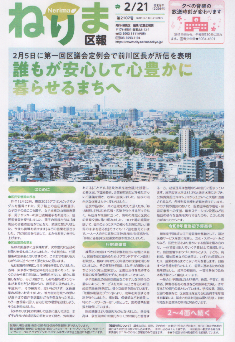 ねりま区報 2/21 誰もが安心して心豊かに暮らせるまちへ