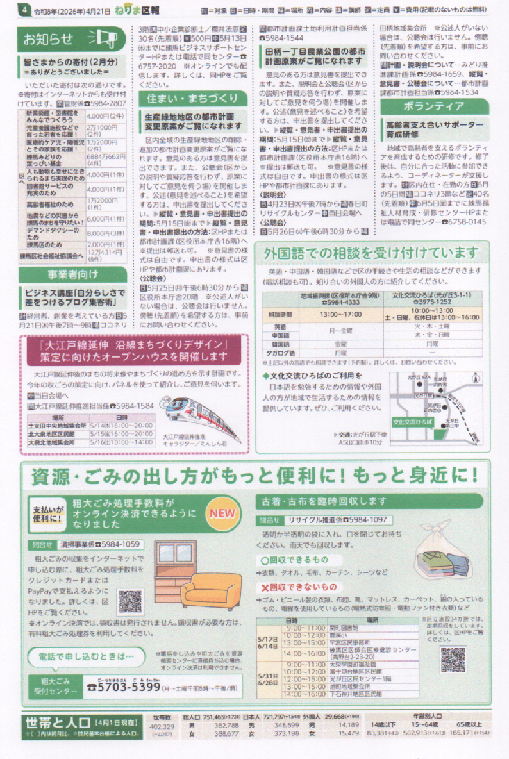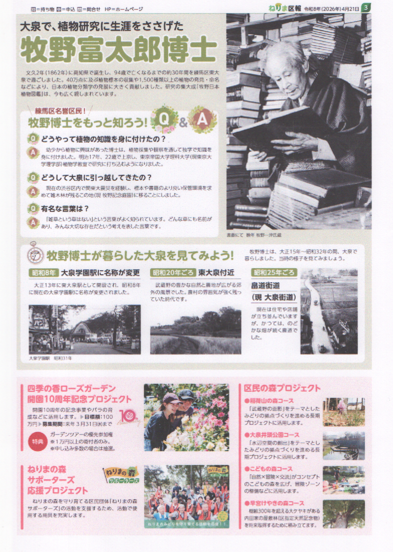 ねりま区報 4/21 夢の時間を植えつづけて 企画展 牧野富太郎、大泉に来て100年