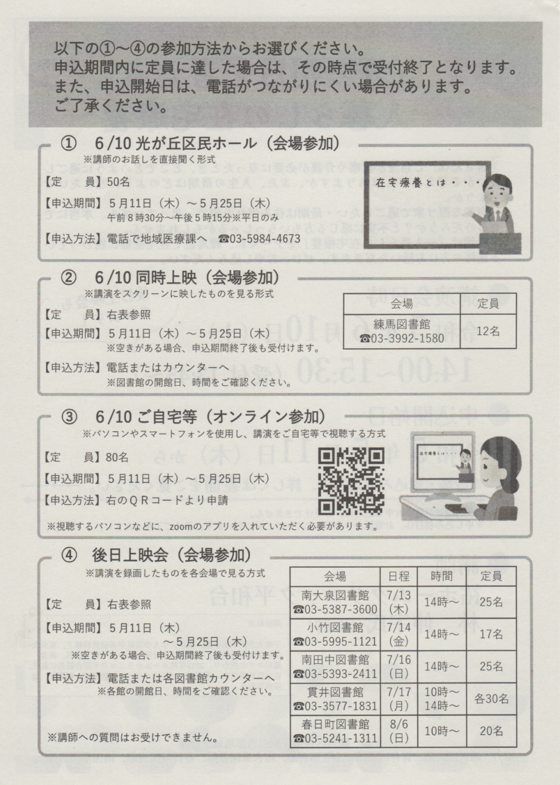 第1回練馬区在宅療養講演会 自分の明日を考える~一人暮らしの在宅療養~