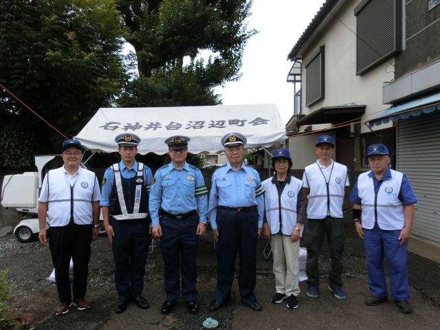 令和6年9月26日 石神井警察署箕輪副署長 町田交通安全協会副会長が沼辺町会テントに来られました